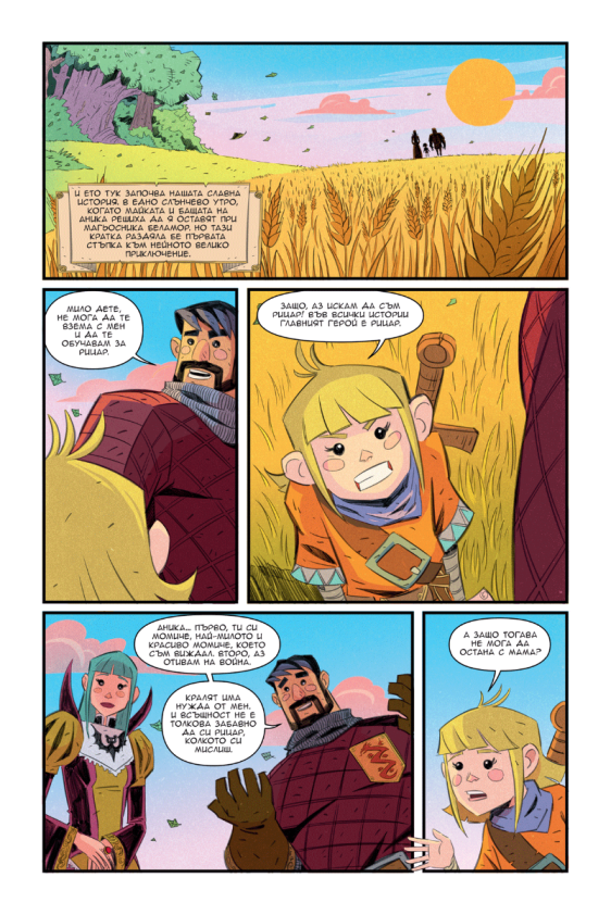 Нов български детски комикс е винаги повод за радост, а „Аника: Рицарят магьосник, том 1: Аника и изгубените котки“ (изд. „Артлайн“) е от онези заглавия, които още с първите си страници показват, че имат потенциала да се превърнат в обичана поредица. Създаден от Константин Витков – Титис и Соня Анастасова, комиксът съчетава приключенско фентъзи, ярка визуална идентичност и чисто детско въодушевление.